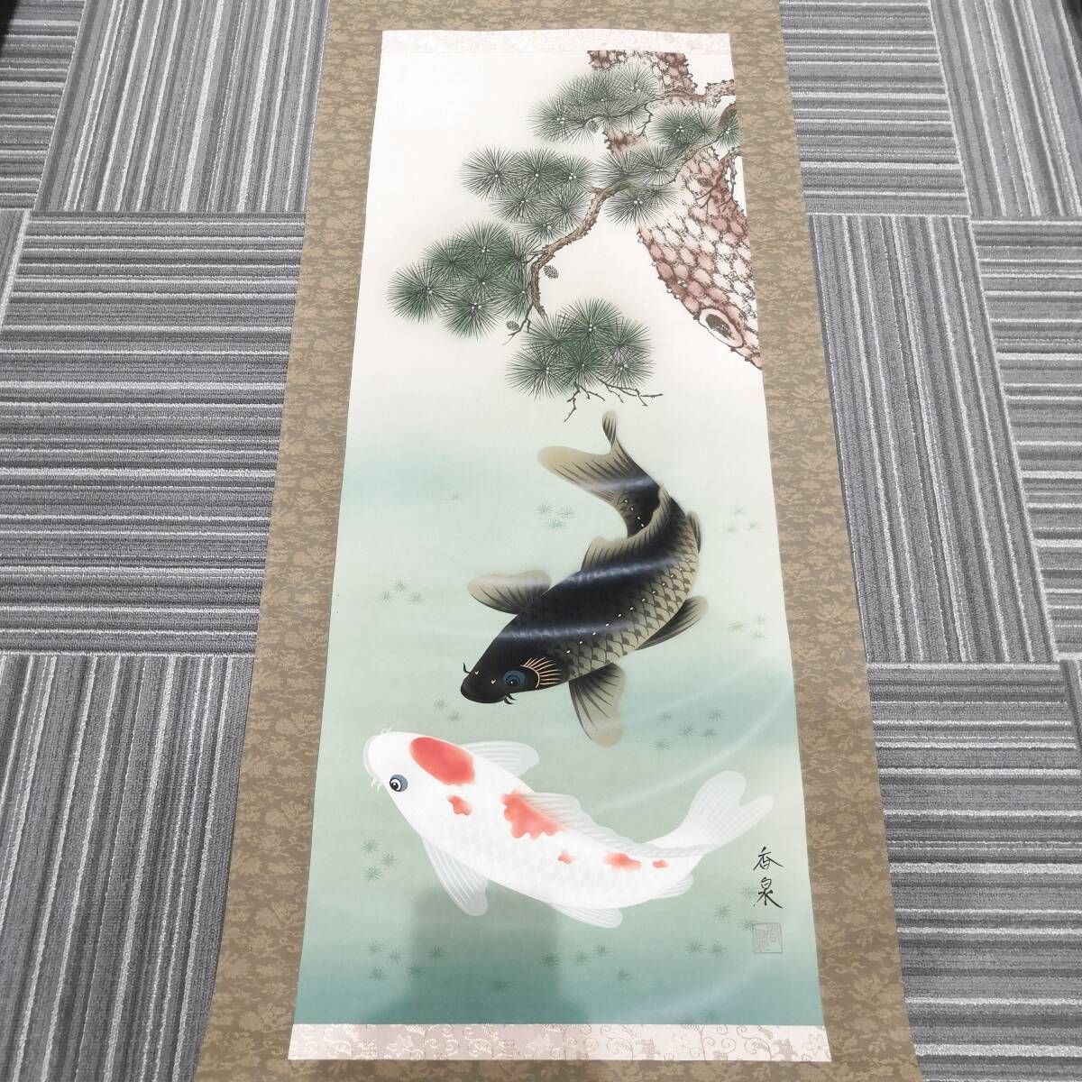 - 【24】動物 鯉 巻物 掛け軸 掛軸 日本画 骨董 日本書 伝統品 骨董品 時代物 年代物 美術品 芸術品 コレクション