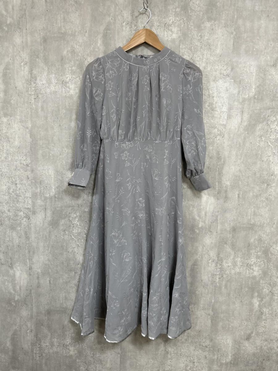 > Lily Calin リリーカラン any sis オンワード樫山 ラインエンブロイダリー ドレス ワンピース size0/グレー ■◇◎ レディース