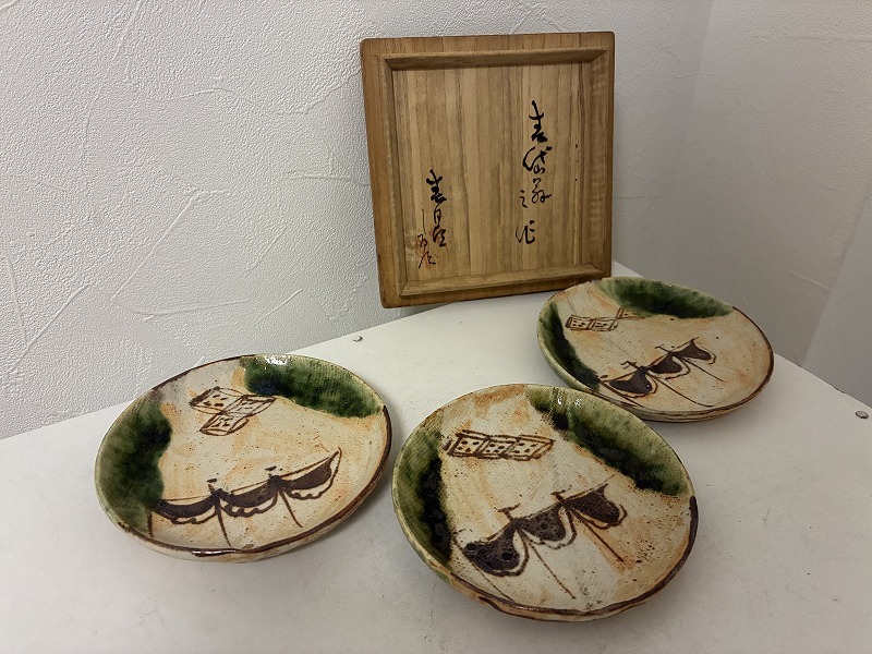 織部銘々皿 3枚 在銘 共箱ありです。
