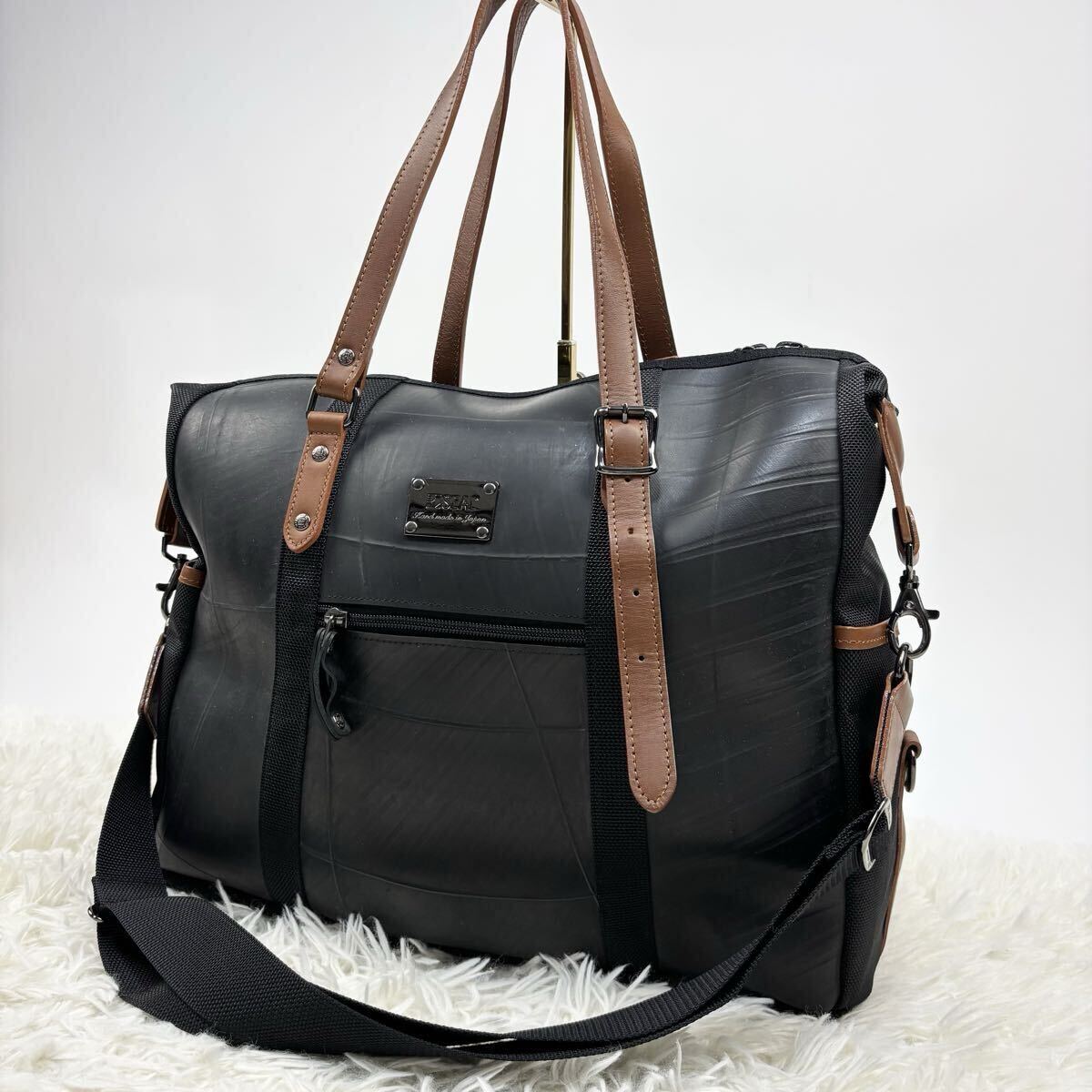 - 『未使用級!』日本製 SEAL シール 牛革 レザー × タイヤチューブ 2way ボストンバッグ ショルダー ブラック 黒