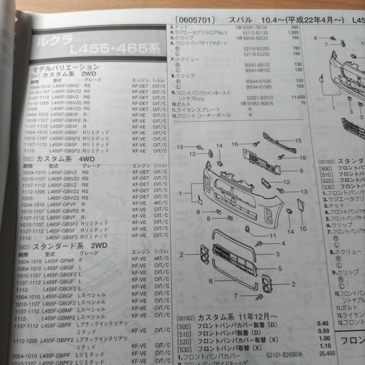 - ■■【パーツガイド】 スバル ルクラ (L455・465系) H22.4~ 2013年後期版 【絶版・希少】