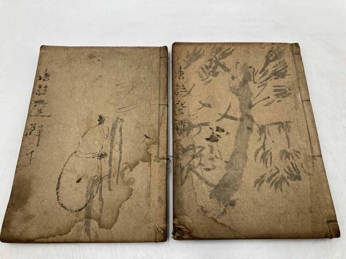 - 骨董 古書 『唐詩選解』2冊 中巻 下巻 和本 江戸時代 古文書 唐本和刻本 古典籍