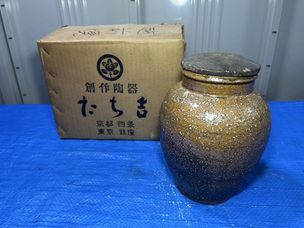 - 【書道先生放出品 希少価値品 】たち吉 越前焼 壺 木フタ 日本の伝統工芸 昭和 レトロ 骨董品 アンティーク