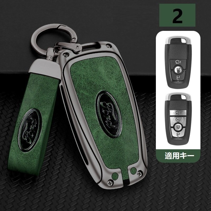 - フォード スマートキーケース キーカバー TPU キーホルダー 車専用 傷 防止 鍵を保護 深錆色/グリーン ☆2番