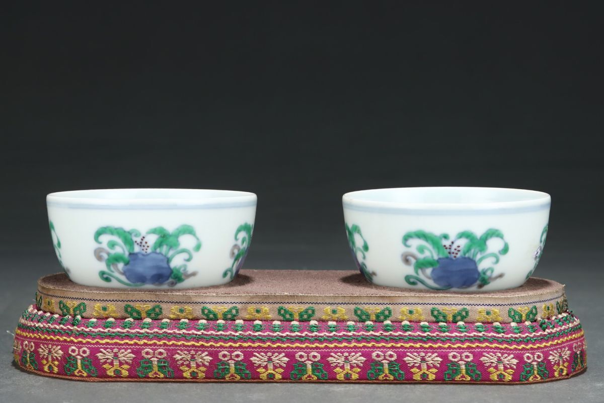 - 永し 明時代 大明成化年製 斗彩折枝花卉紋杯 一対 古陶磁器 陶芸 皿 中国陶瓷器 唐瓷 置物擺件 古美術品 古賞物 旧家蔵出 中国唐物 A594