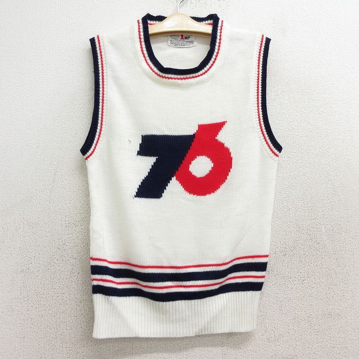 - 古着 ニット ベスト キッズ ボーイズ 子供服 80s 76 アクリル クルーネック 白他 ホワイト 23dec14