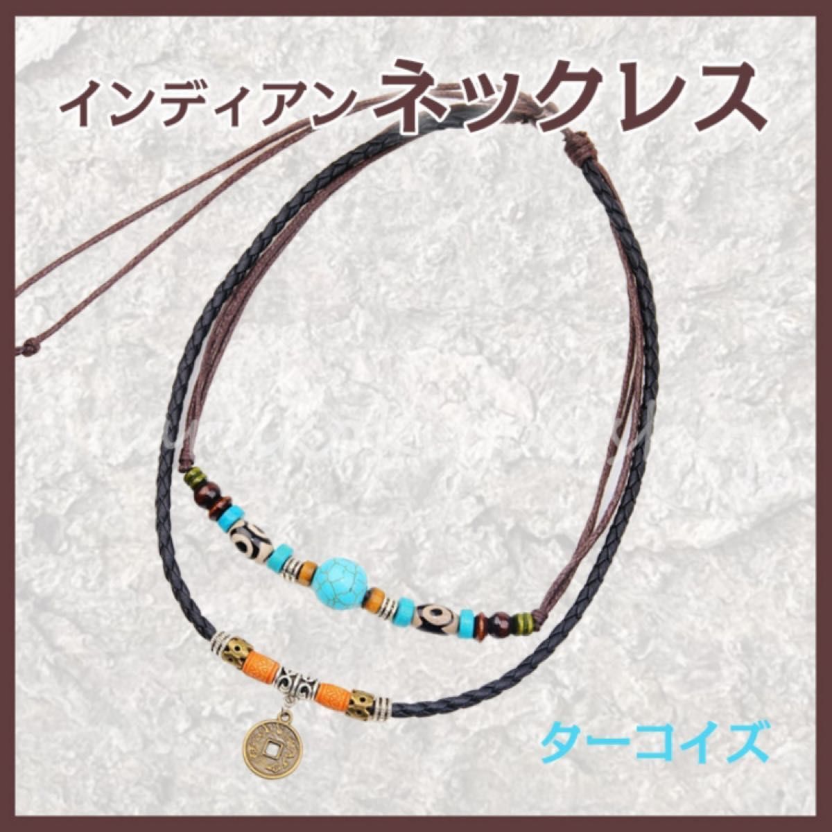 - ターコイズ ネックレス インディアン アメカジ ジュエリー ビーズ 男女兼用 ユニセックス プレゼント ボヘミアン サーフスタイル