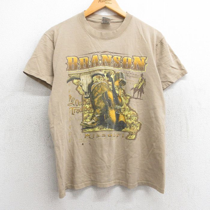 > S★古着 半袖 ビンテージ Tシャツ メンズ 00s バイオリン ブランソン ウエスタンブーツ コットン クルーネック ベージュ カ