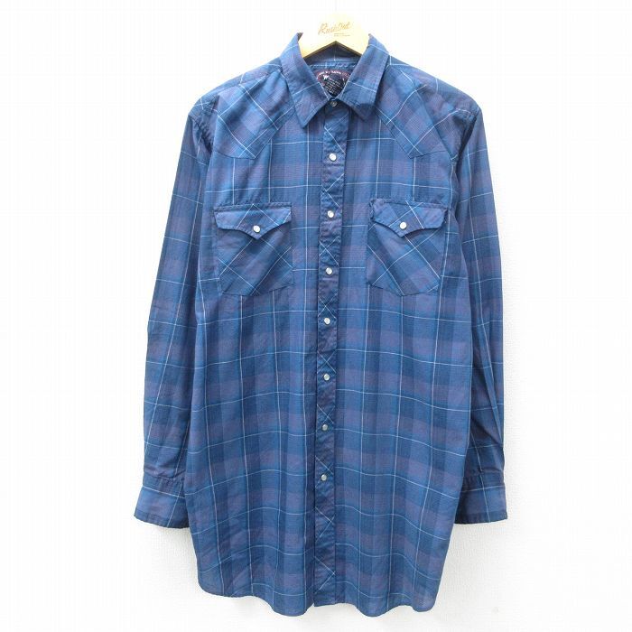 > L/古着 長袖 ウエスタン シャツ メンズ 00s ロング丈 紺他 ネイビー チェック 25feb21 中古 トップス