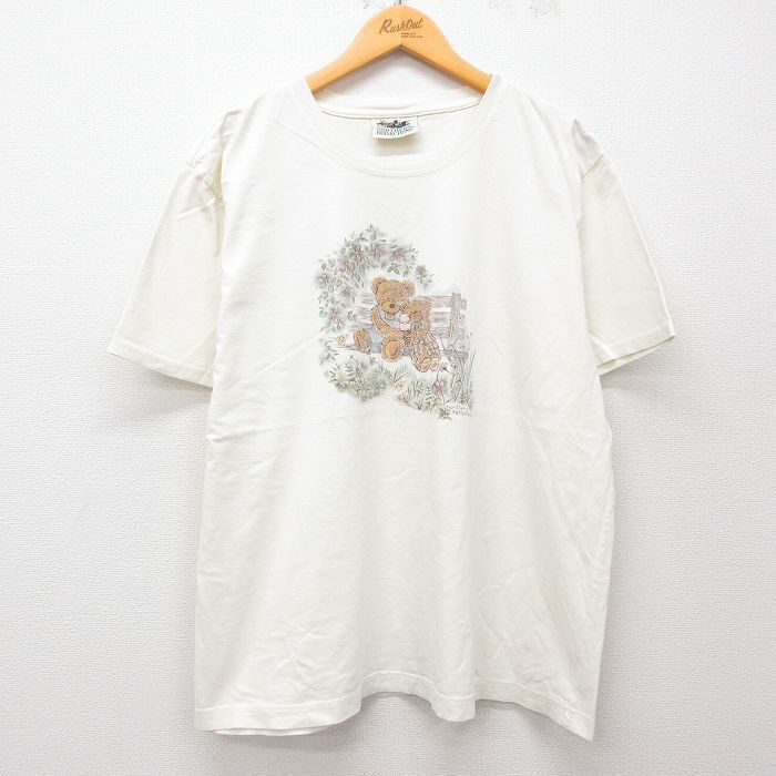 - 古着 半袖 ビンテージ Tシャツ レディース 00s クマ クルーネック 生成り 25may08 中古