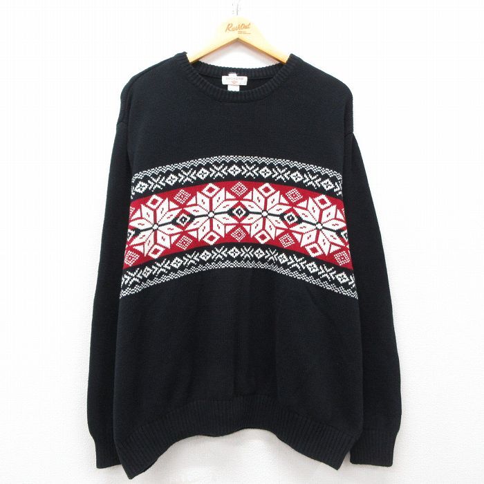 - XL/古着 ドッカーズ 長袖 ノルディック セーター メンズ 雪柄 大きいサイズ コットン クルーネック 黒 ブラック 25mar13 中