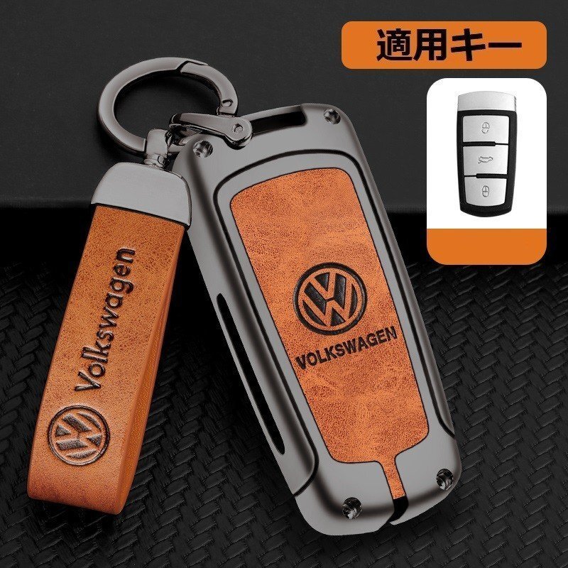 > フォルクスワーゲン スマートキーケース キーカバー TPU キーホルダー 車専用 傷 防止 鍵を保護 ☆F番☆深錆色/オレンジ