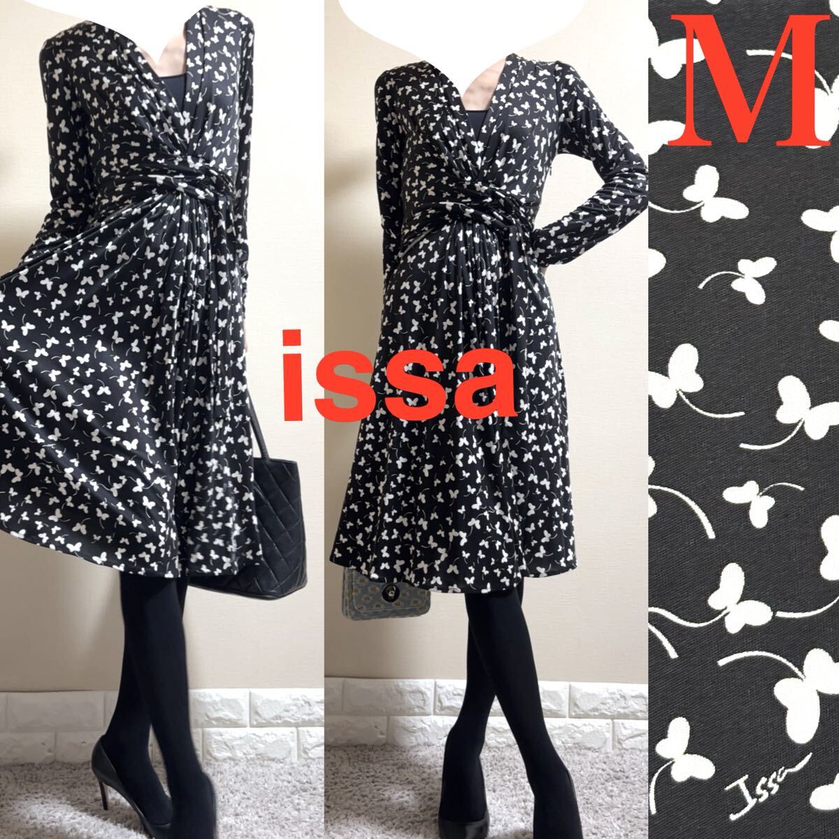 - 極美品!ISSA LONDON issa Issa LONDON イッサ ロンドン キャサリン妃 蝶柄 バタフライ シルク100% ワンピース M issa 黒 UK10 US6