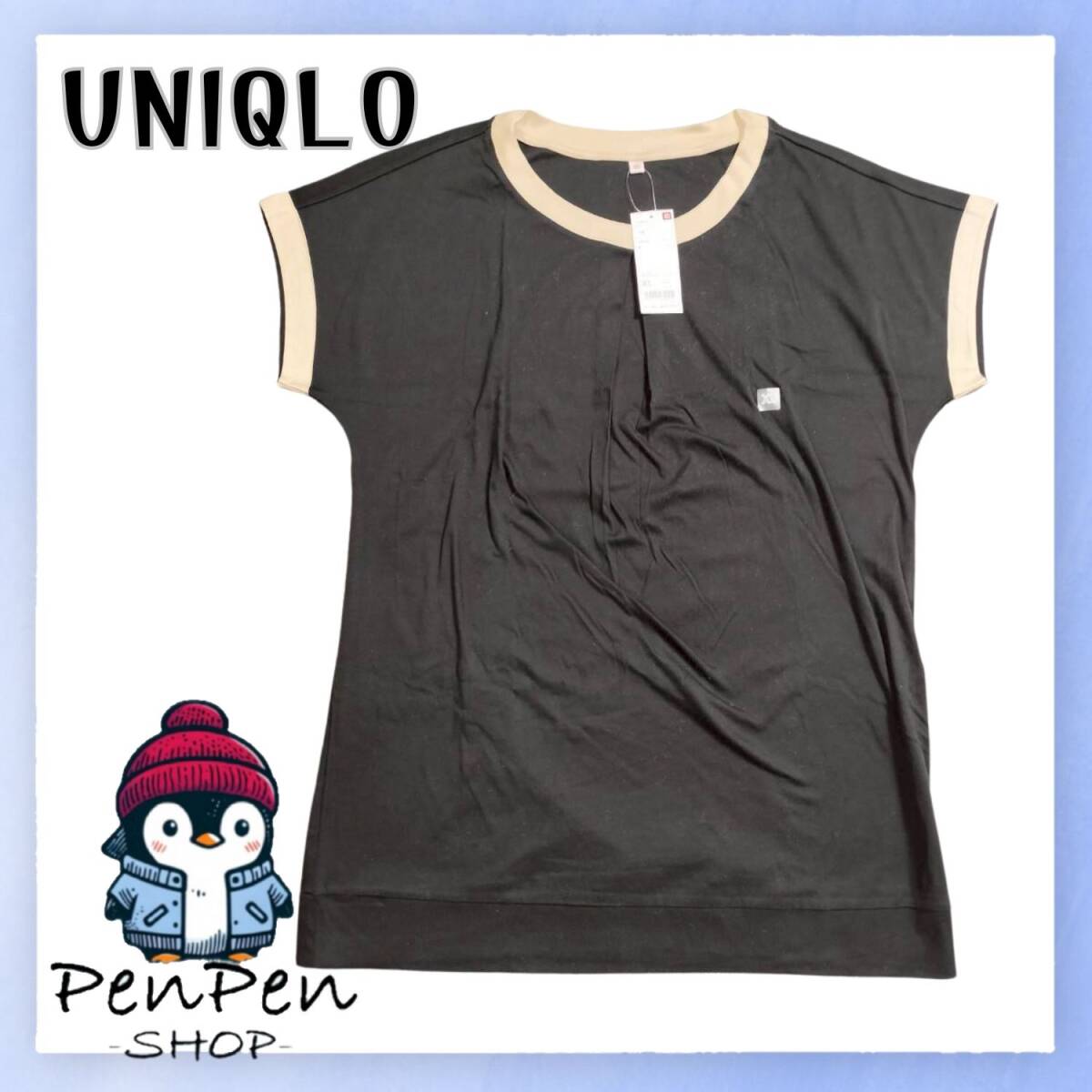 - タグ付未使用 UNIQLO ユニクロ レディース カラーブロック チュニック 半袖 Tシャツ 綿100% ブラック ベージュ XLサイズ LL クルーネック