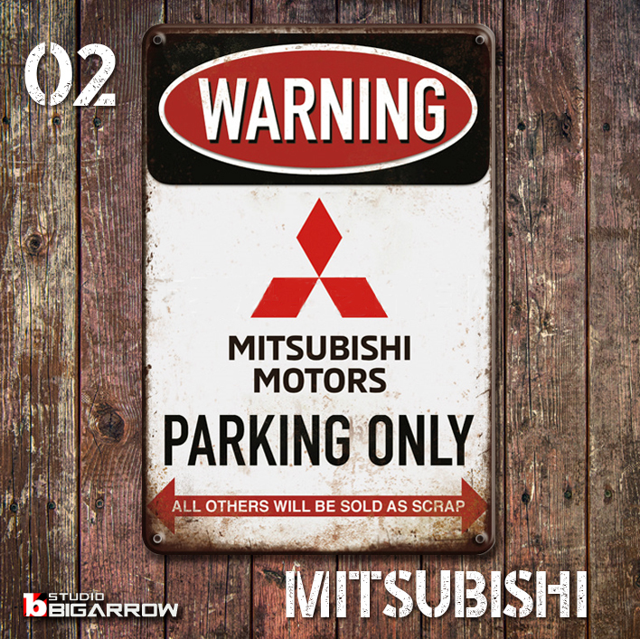 > 02 ブリキ看板 20×30㎝ MITSUBISHI 三菱自動車 ガレージ メタルプレート アメリカンインテリア USフェンス 世田谷ベース
