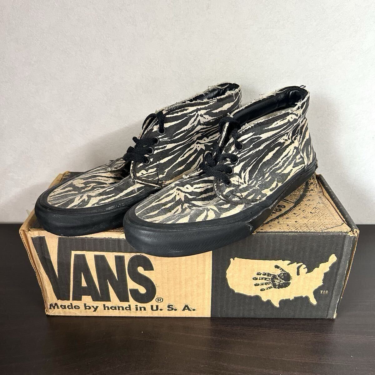 - 90s USA製 VANS CHUKKA BOOT ○ 古着 ビンテージ 90年代 バンズ アメカジ アメリカ ストリート ゼブラ タイガー チャッカ ハイカット 総柄