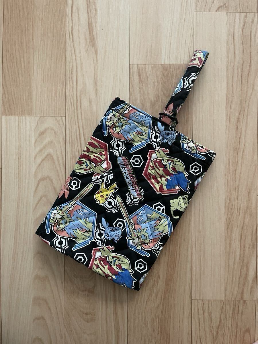 - ★ポケットモンスター 上履き入れ★シューズケース シューズバッグ★キルト★ポケモン ピカチュウ★ブラック★キッズ★日本製★マルヨシ