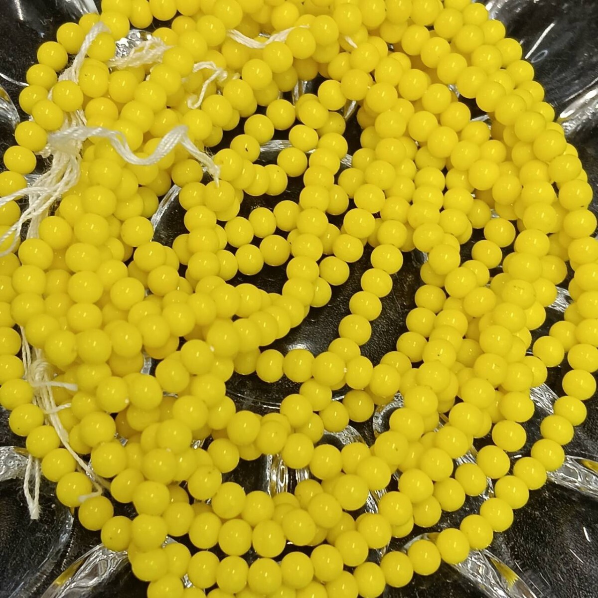> L103 ☆未使用 大量 チェコ ガラスビーズ 55g 4m ラウンド 黄色 イエロー 大粒 ヴィンテージ パーツ アクセサリー ネックレス B-182