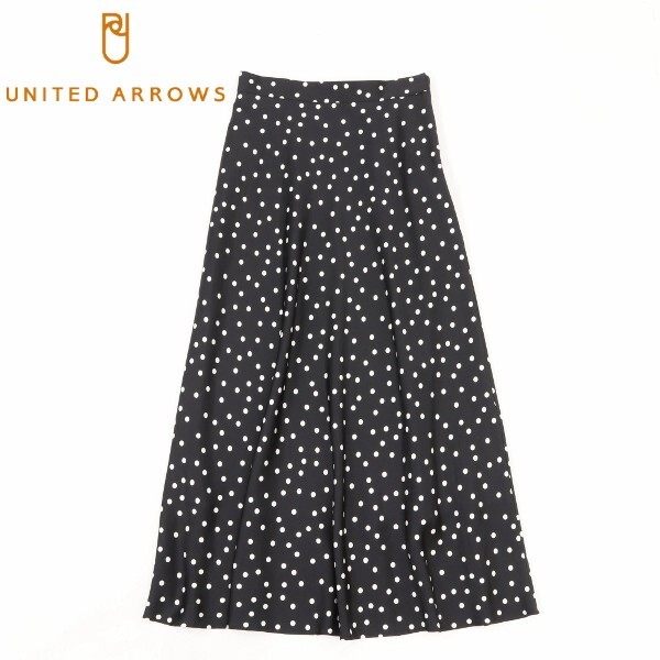 - 【KA193】美品◆UNITED ARROWS ユナイテッドアローズ 水玉 ドット柄 フレア ロング スカート 黒 ブラック 38