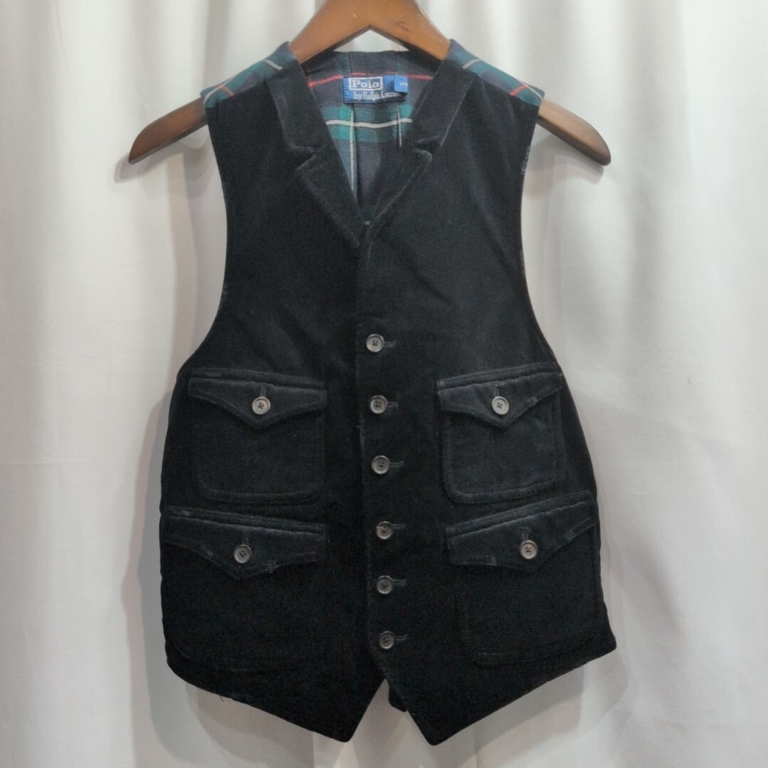 - POLO RALPH LAUREN ポロラルフローレン チェック×ベロア切替 ベスト S メンズ 黒 ブラック ジレ