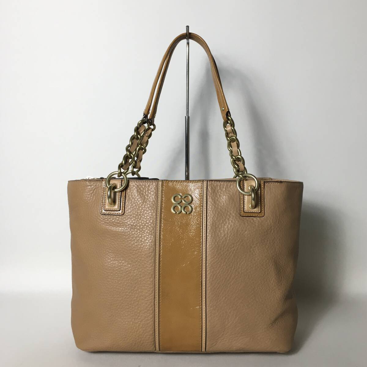 > 79B29|美品|コーチ オプアート トートバッグ ブラウン チェーン