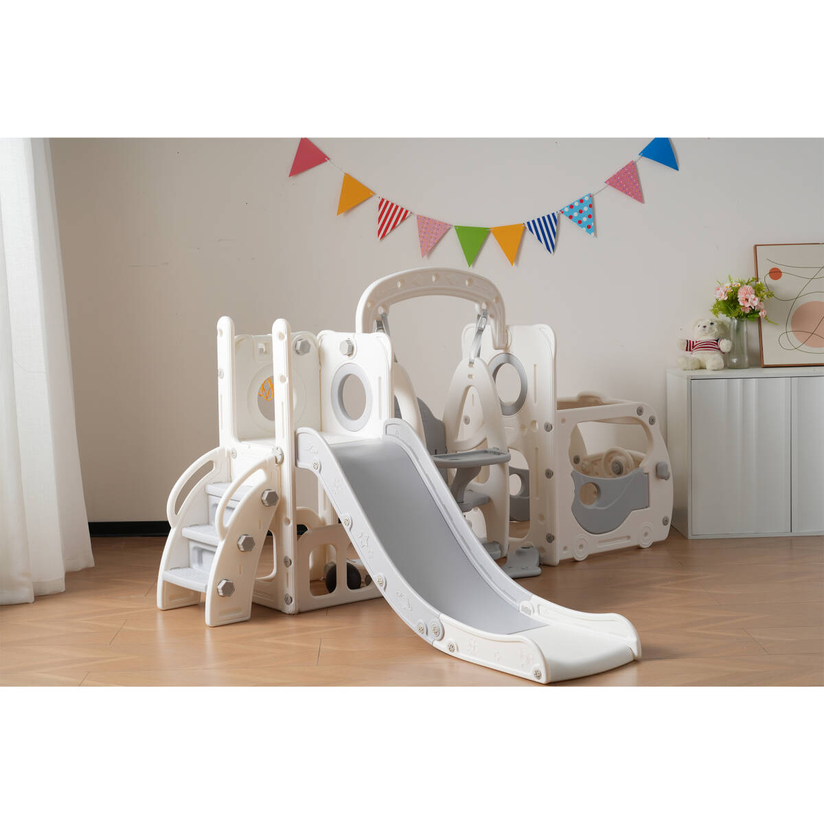 - 滑り台 すべり台 遊具 室内 バスケットボール 収納スペース付き 組立簡単 室内遊具 大型遊具 スウィング【ホワイト+グレー】