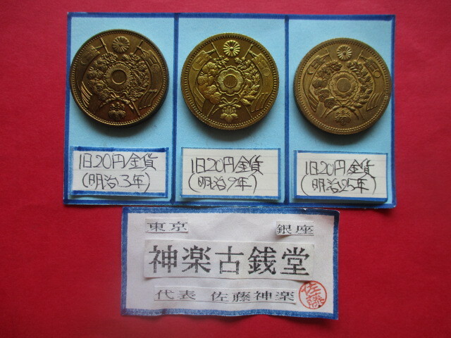 - 【身辺整理】古銭コレクション 旧二十円金貨3点一括(明治3年、明治9年、明治25年)