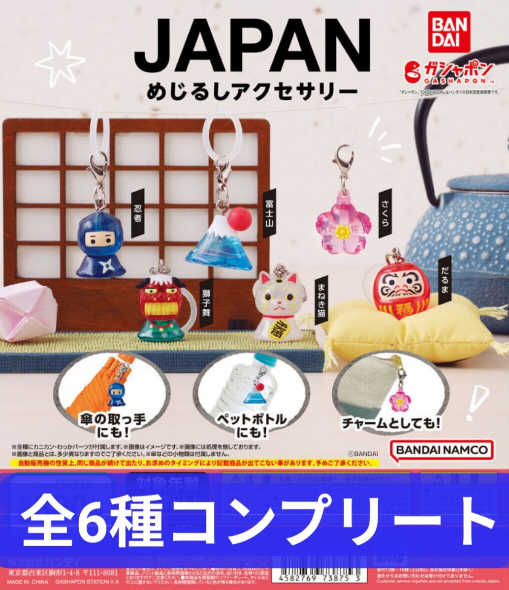 - JAPAN めじるしアクセサリー 全6種 コンプリート ジャパン 日本 チャーム ガチャ ガシャポン コンプ 富士山、招き猫、だるま、さくら