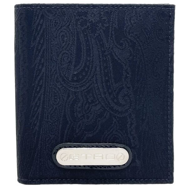 > 15807 エトロ 財布 ペイズリー 二つ折り財布 ナイロン ブラック 黒 ETRO ロゴプレート パスポケット付き