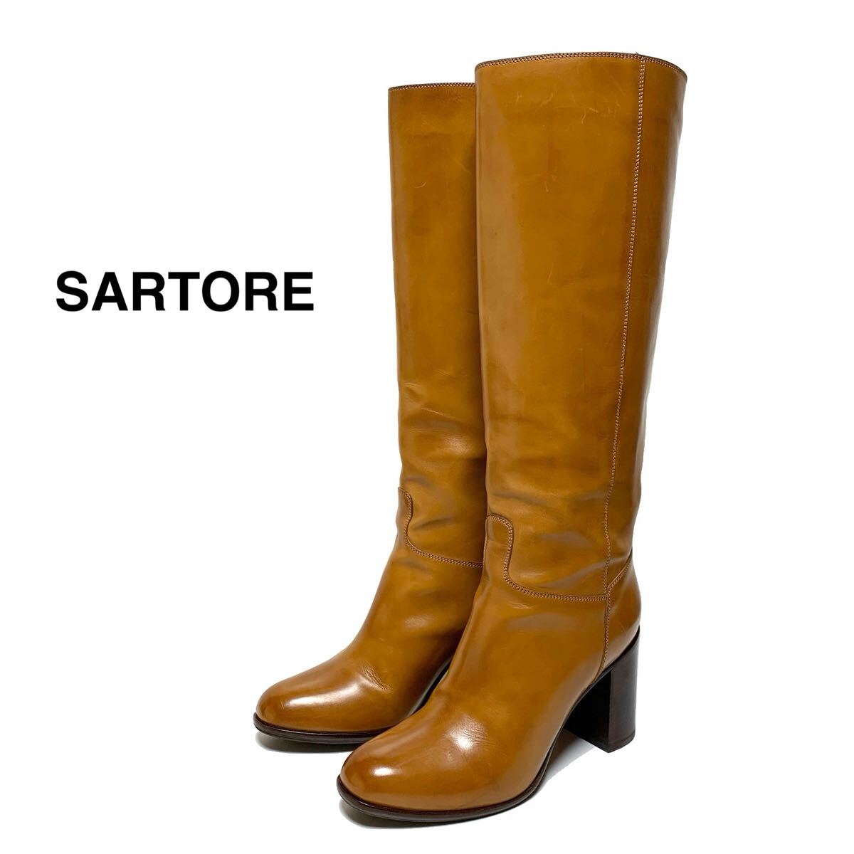 > ☆良品 SARTORE サルトル レザー ヒール ロングブーツ キャメル size 35 イタリア製 ジョッキーブーツ 乗馬ブーツ