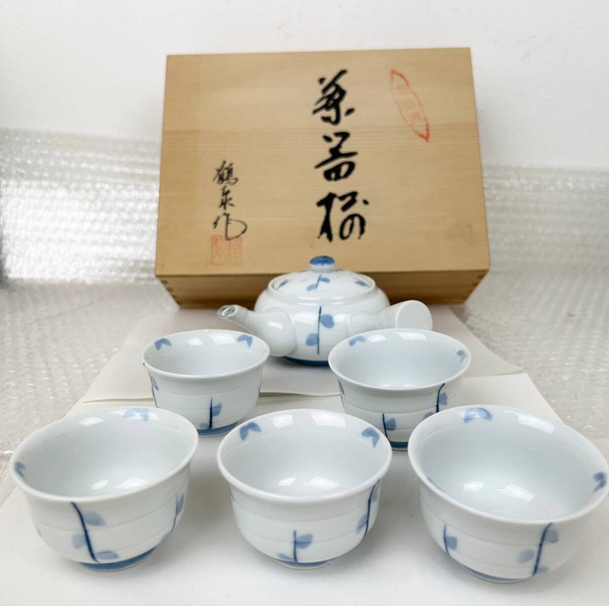 - ☆★☆有田焼 茶器揃 鶴泉作 急須 湯呑み セット 未使用品☆★☆