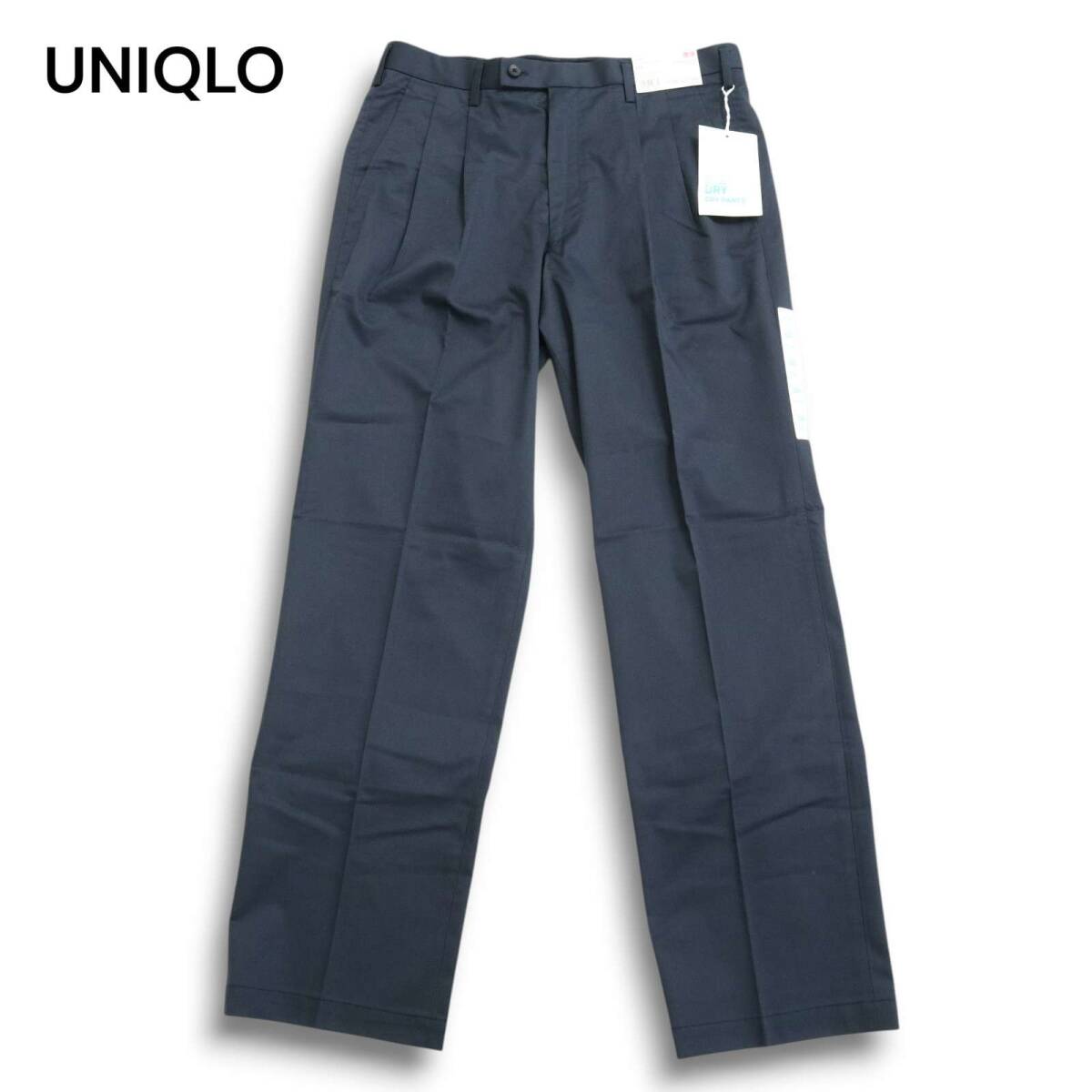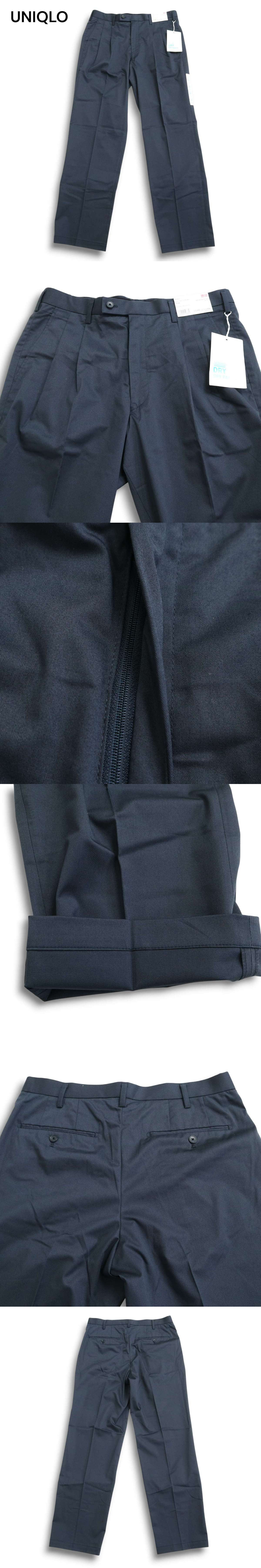 - 【新品 未使用】 UNIQLO ユニクロ 通年 ストレッチ★ ドライ ツータック スラックス パンツ Sz.85 メンズ 紺 ネイビー
