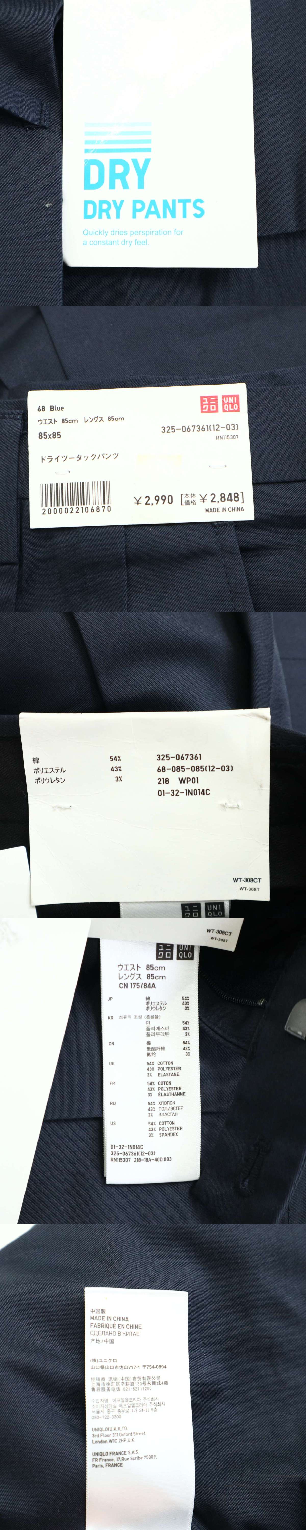 > 【新品 未使用】 UNIQLO ユニクロ 通年 ストレッチ★ ドライ ツータック スラックス パンツ Sz.85 メンズ 紺 ネイビー