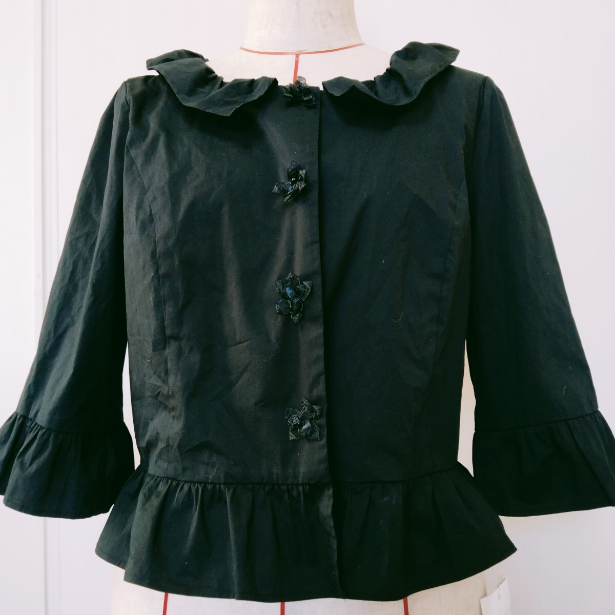 - 未使用*ギャラリービスコンティ GALLERYVISCONTI*サイズ3*ジャケット*フリル*オーガンジーボタン*黒*上着*ストレッチ