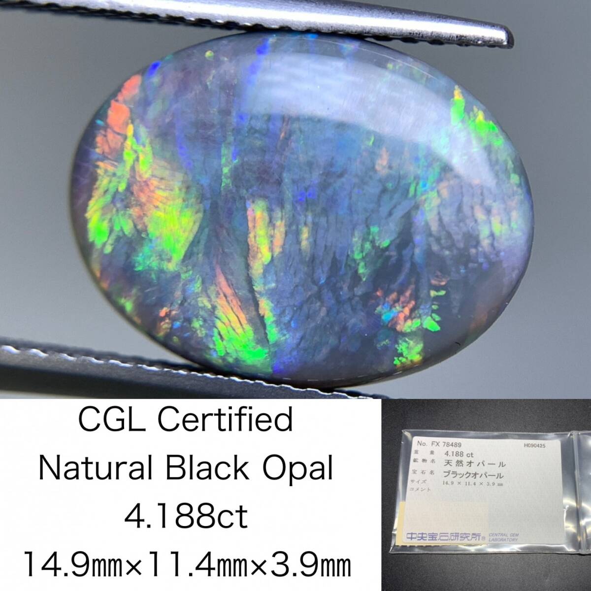 > ブラックオパール 天然 4.188ct 中央宝石ソーティング付き 14.9×11.4×3.9 ルース( 裸石 ) 6607Y