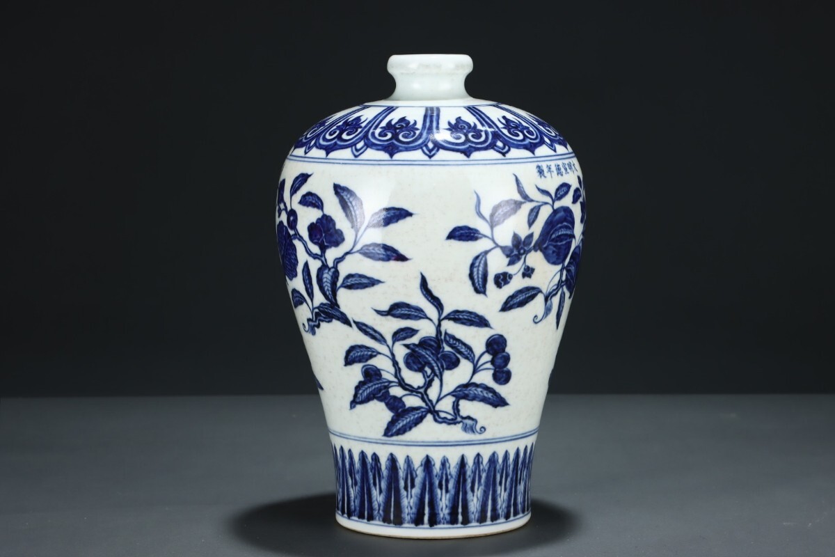 - 【積古】中国古美術 明時代 青花 花瓶 古玩 花瓶 骨董 美術品 骨董品 時代物 古美術 唐物 当時物 置物 ga25 高さ28cm