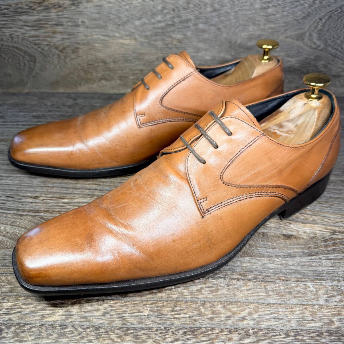 - ◆whoop'-de-doo'◆フープディドゥ 26.0cm(表記41)ビジネスシューズ プレーントゥ ブラウン メンズ 革靴 靴 レザー 中古 宅急便 即決