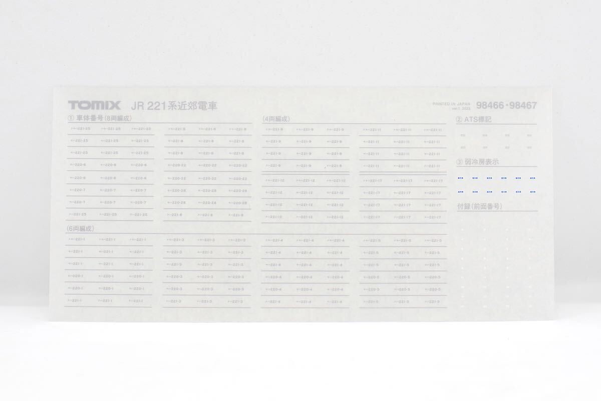 - TOMIX 98467 JR 221系 近郊電車 基本セットB 6両セット 付属品 インレタ 転写シート1枚