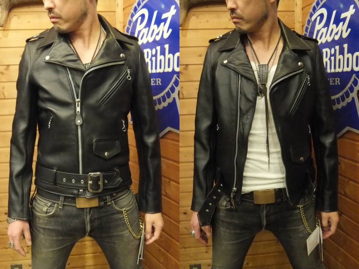 - ショット正規店 217US 不動の定番=ワンスター・ライダース 日本別注[細め][着丈ちょい長め][茶芯の黒][柔らかい羊革]新品[38]が送料無料!!