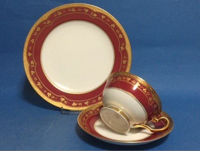 - ◎大倉陶園 アレキサンドリーヌ 高貴な赤と金蝕 カップ&ソーサーと20cmデザート皿セット◎