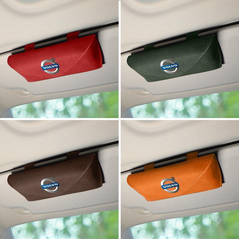 - ボルボ 車載サングラス収納 メガネボックス メガネケース サングラスクリップ収納ケース サンバイザー 手触りいい アルカンターラ素材