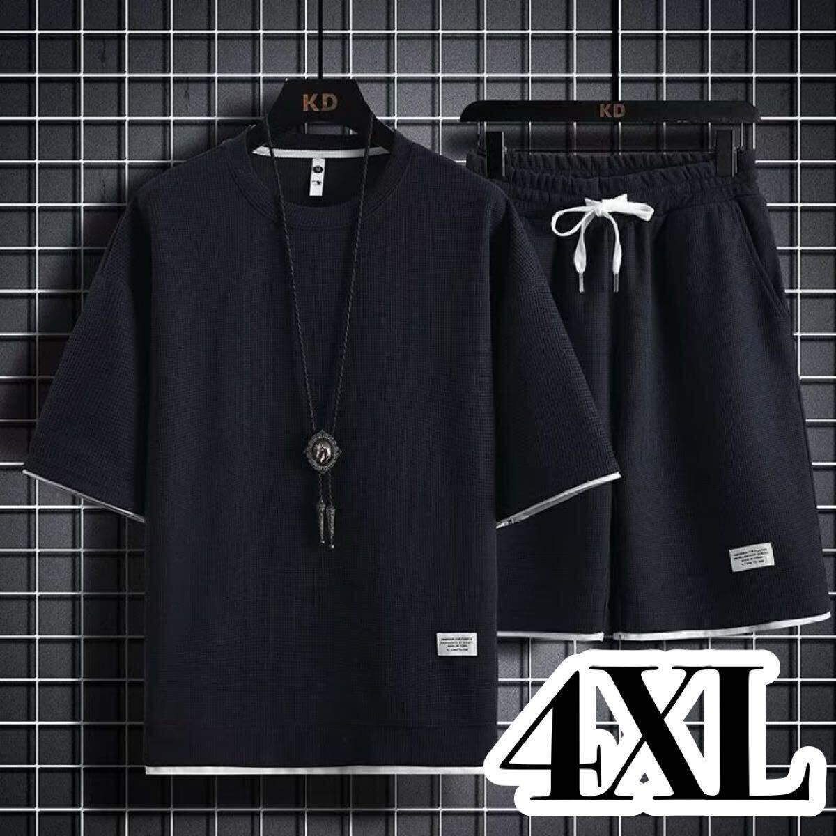 - 4XL メンズ ルームウェア ブラック 黒 スウェット セットアップ 短パン カジュアル 上下セット 半パン パジャマ 部屋着
