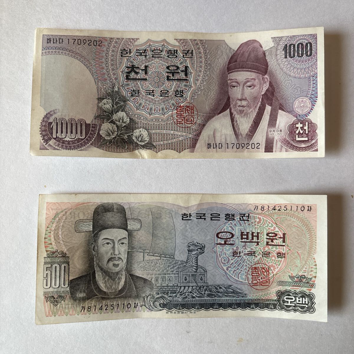 - 韓国 旧貨幣 1000ウォン 500ウォン セット 紙幣 お札 古紙幣