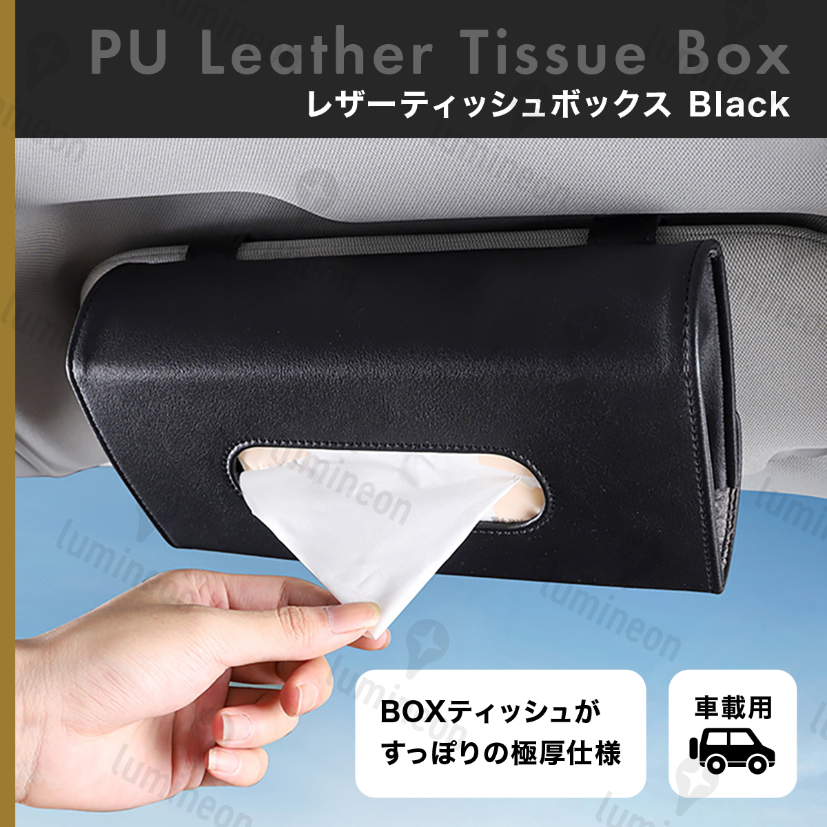 > ティッシュ ケース カバー おしゃれ 車 用 吊り下げ 黒 レザー 合皮 サンバイザー 高級 感 安い 収納 厚型 スリム モダン 横置き g105a 3