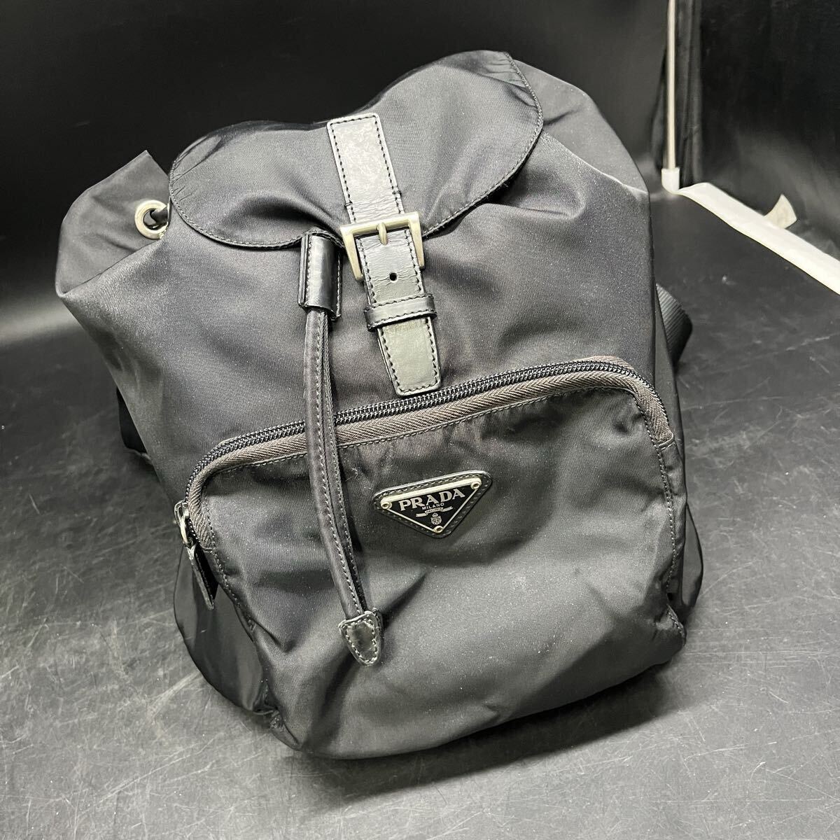 > 1821 PRADA プラダ ナイロンリュック リュックサック バッグ バックパック ナイロン×レザー 黒 三角ロゴ