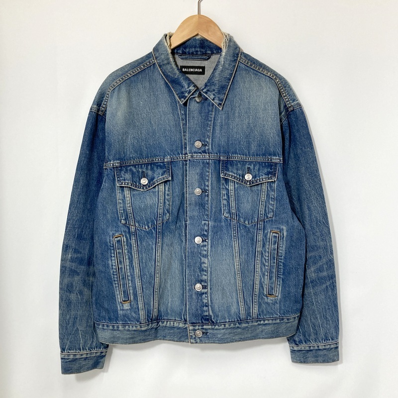 - BALENCIAGA バレンシアガ デニムジャケット バックロゴプリント Gジャン 古着 メンズ サイズ46 M相当 インディゴ アウター A14799◆