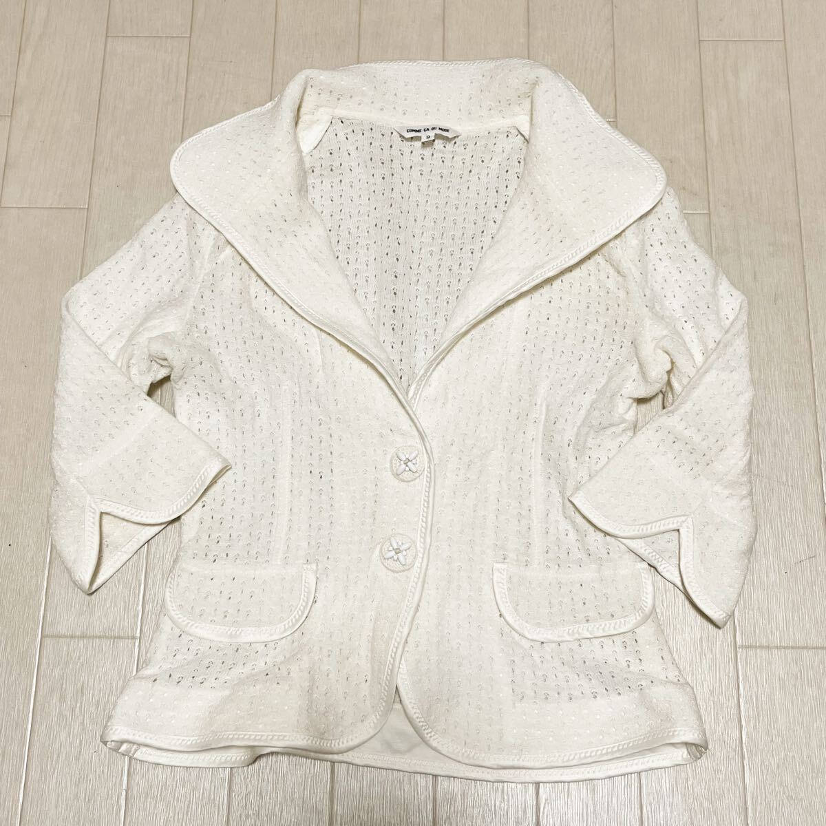 > 和844★ COMME CA DU MODE コムサデモード テーラードジャケット ニット リネン混 9 ホワイト レディース