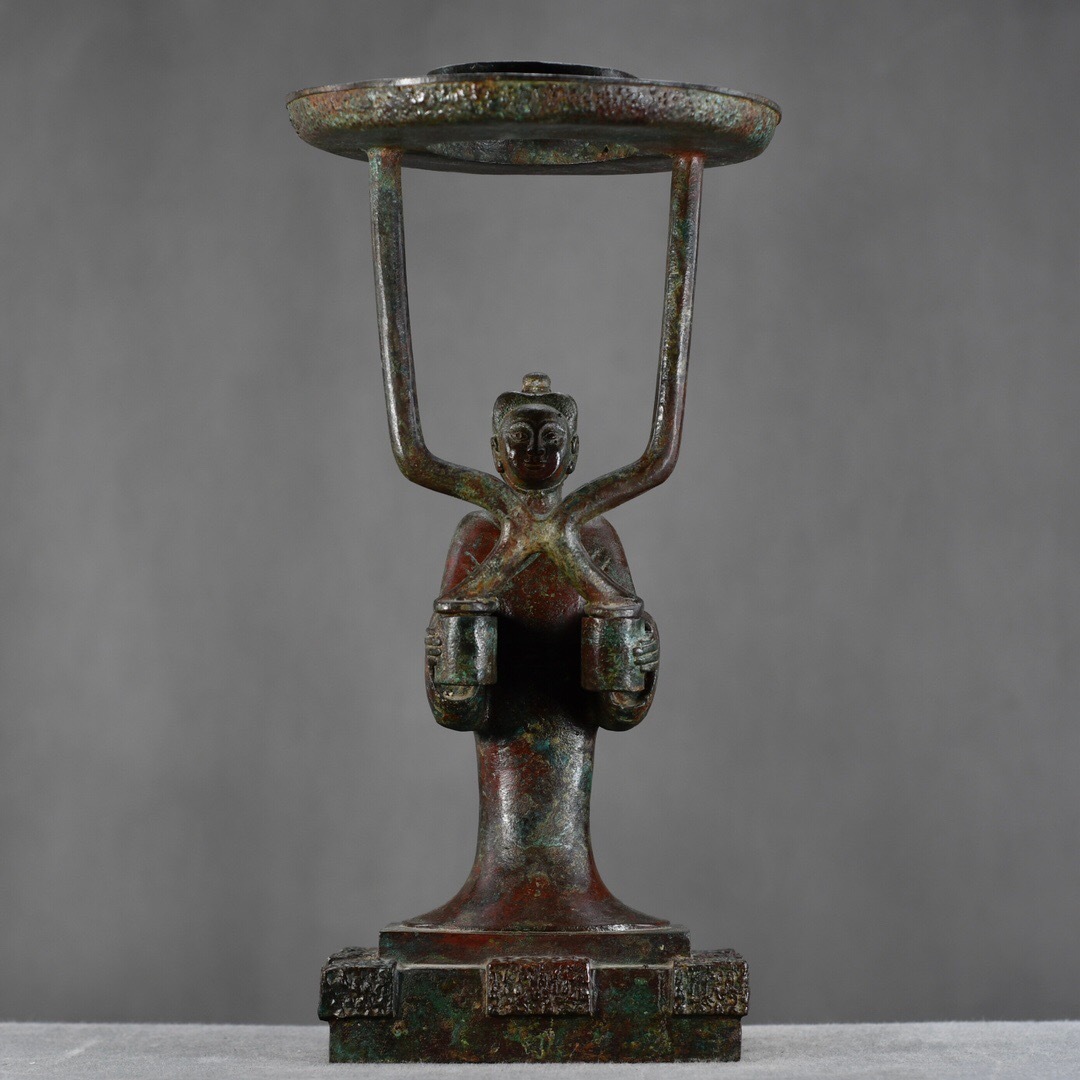 - 【超珍館蔵】漢 青銅製 人傭燈 青銅器 置物 賞物 古賞物 古董品 古美術品 時代物 旧家蔵出 稀少珍蔵品
