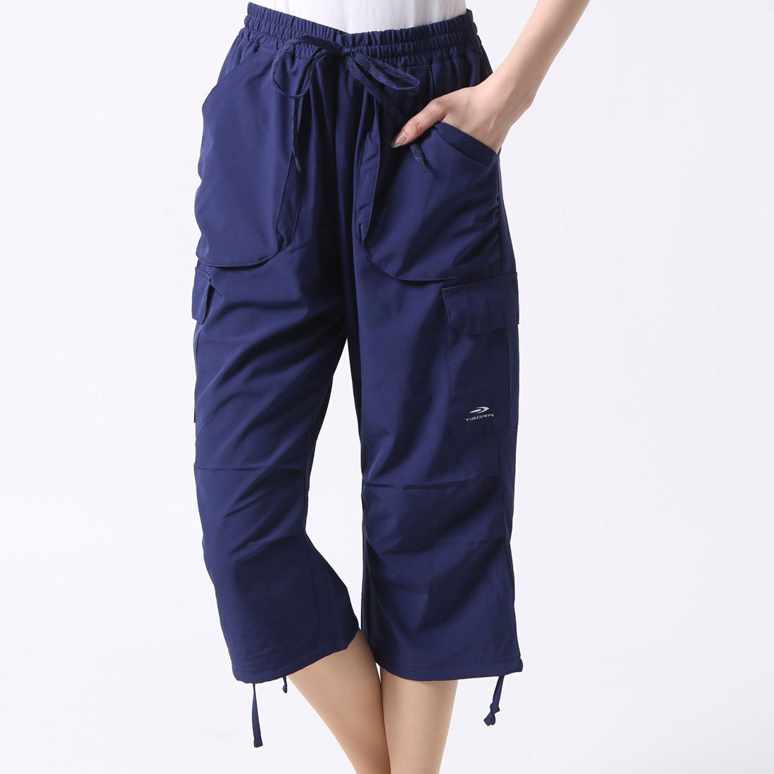 - TIGORA レディースS カプリパンツ 吸汗速乾 ストレッチ機能付き ネイビー 軽量 フィットネス エアロビクス ズンバ ヨガ ダンスウェアdamiss