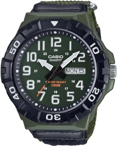 - [カシオ] CASIO スタンダード ビッグフェイス クオーツ 腕時計 MRW-210HB-3BV メンズ グリーン ベルクロファステニングバンド 海外モデル